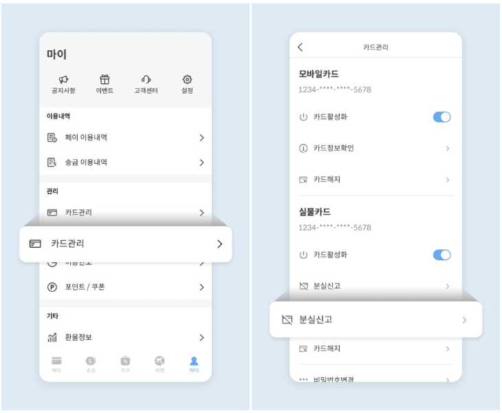 분실신고만 했고 카드 재발급 신청없이 다시 찾았다면 앱에서 분실신고 해제 후 쉽게 재사용이 가능합니다. 분실신고 해제시에는 실물카드번호를 포함해 카드 뒷면의 cvc 번호 3자리 확인이 필요합니다. 실제로 찾았다면 어렵운 문제는 아니겠죠?